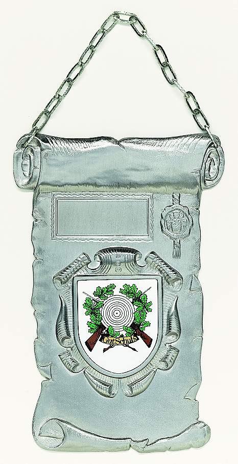 | 1551/497 | Metallehrentavel an Kette für Wappen | 17x26 | 27,00 | 1551 | ||